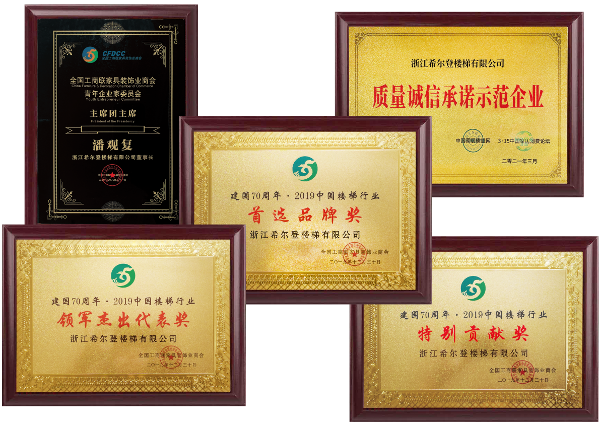 在不斷提升希爾登品牌和企業(yè)實力的同時,希爾登一直熱心參與樓梯行業(yè)的健康發(fā)展;參與創(chuàng)立全國工商聯(lián)樓梯專委會并被推選為中國樓梯品牌聯(lián)盟執(zhí)行主席和樓梯專委會執(zhí)行會長;憑借在行業(yè)內(nèi)的專業(yè)地位,希爾登參與了《木質(zhì)樓梯》,《木質(zhì)樓梯安裝驗收和使用規(guī)范》,《住宅內(nèi)用樓梯》,《建筑用玻璃與金屬護欄》四個國家和行業(yè)標準的起草工作。先后榮獲“中國樓梯十大品牌”、“金木樓梯領(lǐng)軍品牌”、“中國泛家居發(fā)展中企業(yè)500強”、“中國家裝行業(yè)金鉆獎”、“金屬木質(zhì)樓梯一級資質(zhì)”等二十多個榮譽和稱號。我們幾乎參與和見證中國樓梯發(fā)展歷程中的所有重大事件。希爾登過去,現(xiàn)在和未來都是中國樓梯的標桿企業(yè)。